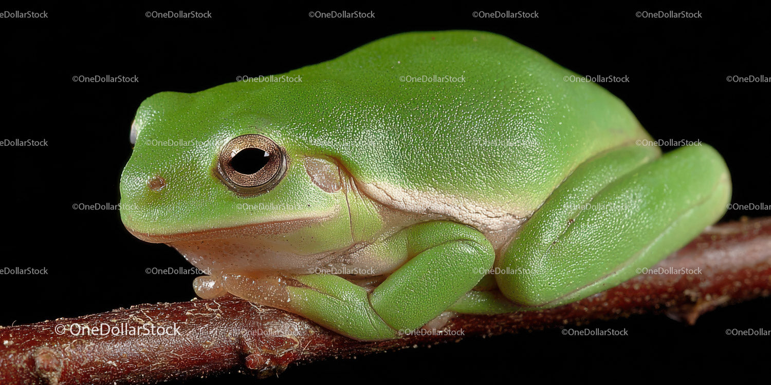 Close-Up of a Vibrant Green Tree Frog on a Branch