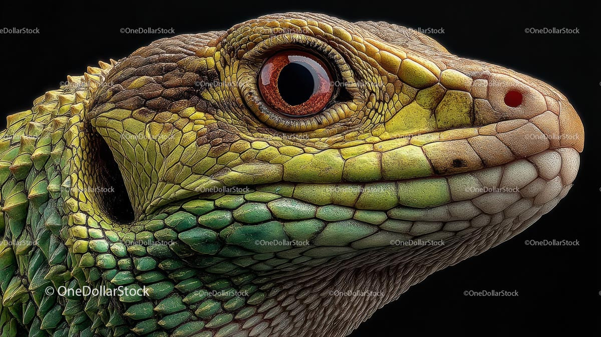 Close-Up of Green and Brown Lizard with Scaly Skin Texture