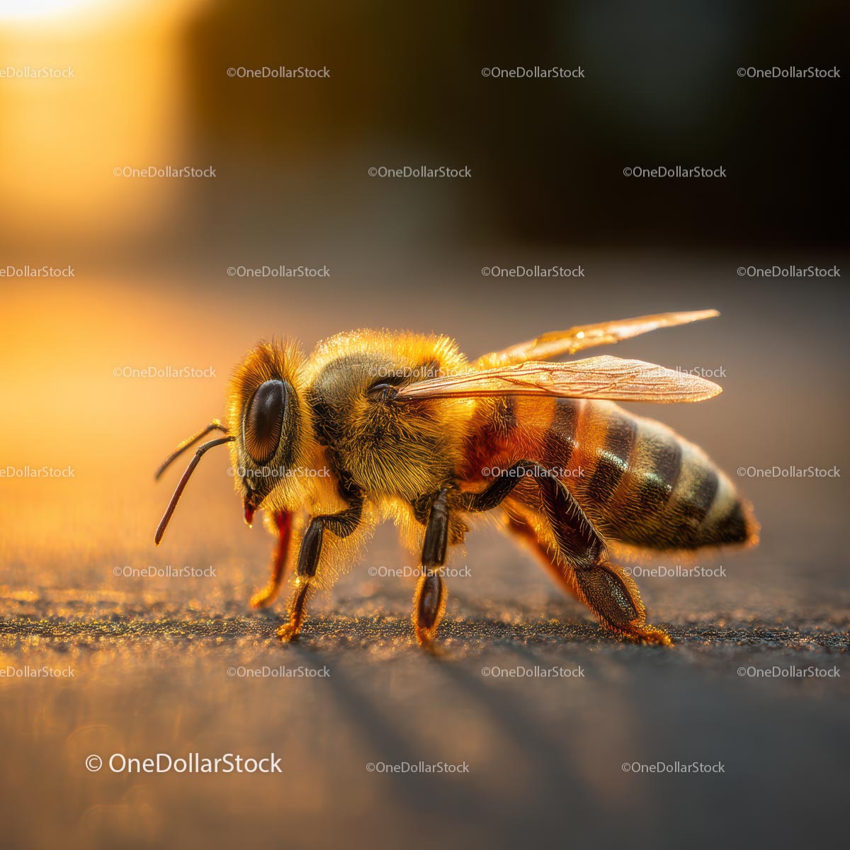 Close-Up of Honey Bee in Warm Golden Sunlight