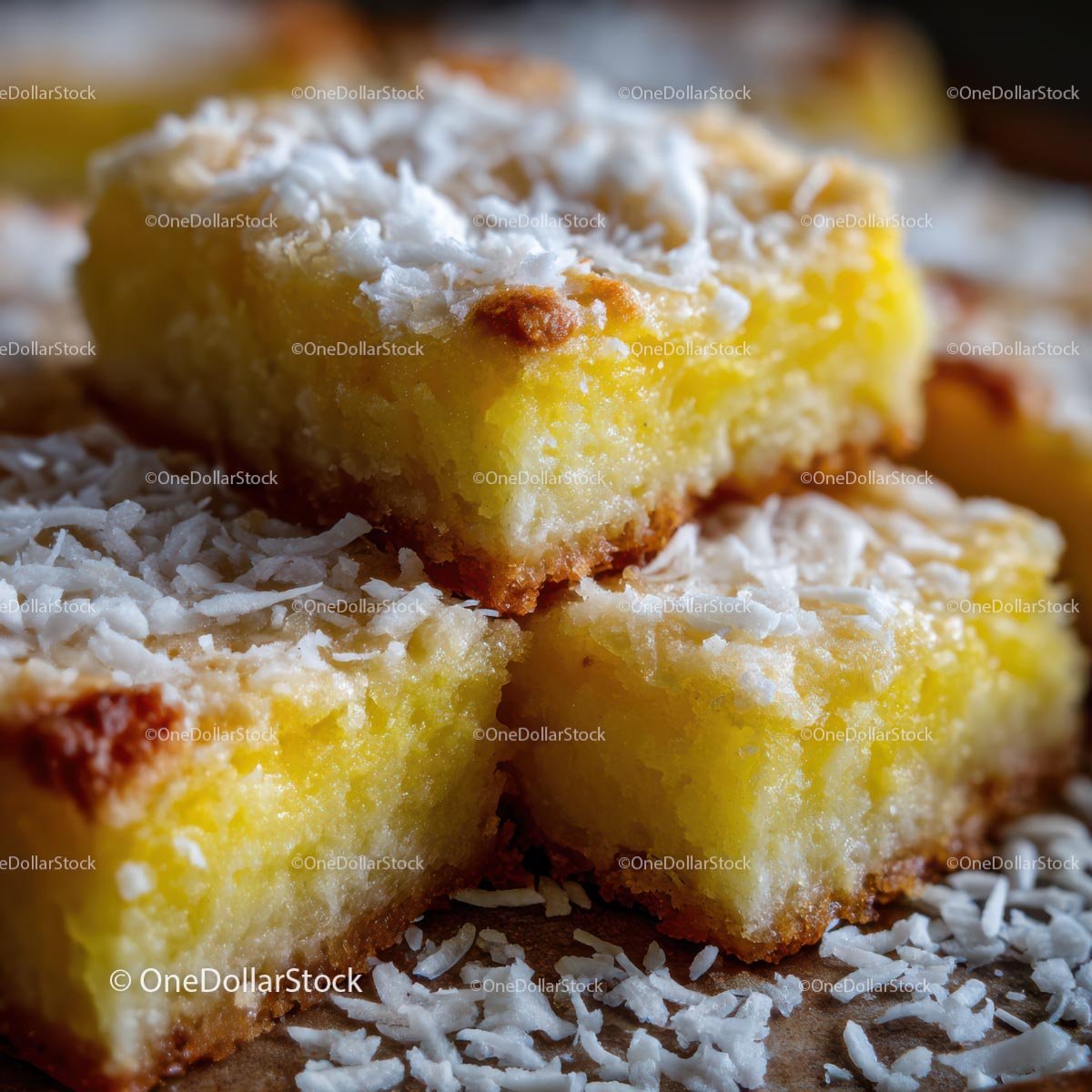 Close-Up of Lemon Bars with Coconut Topping