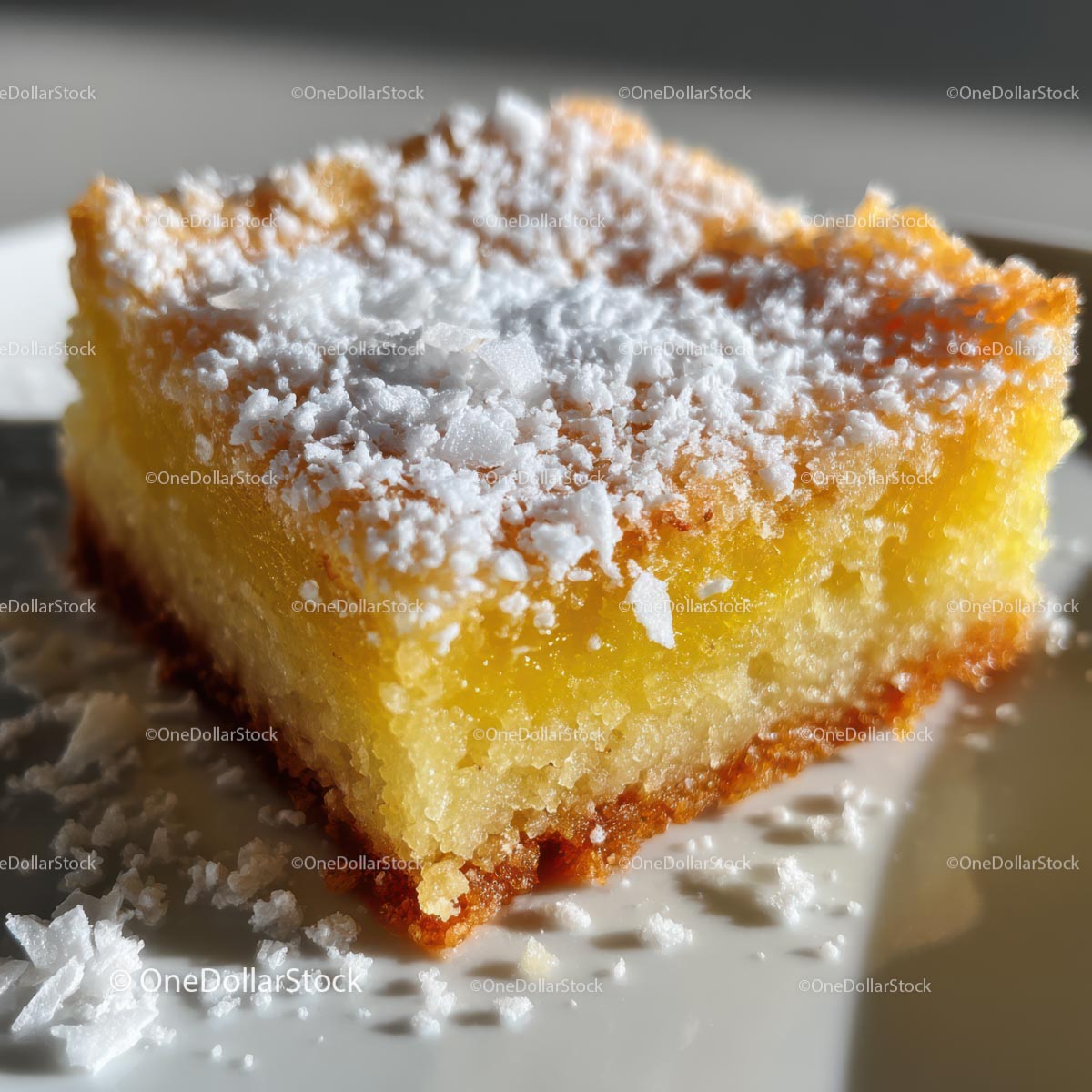 Close-Up of Lemon Cake Slice with Powdered Sugar
