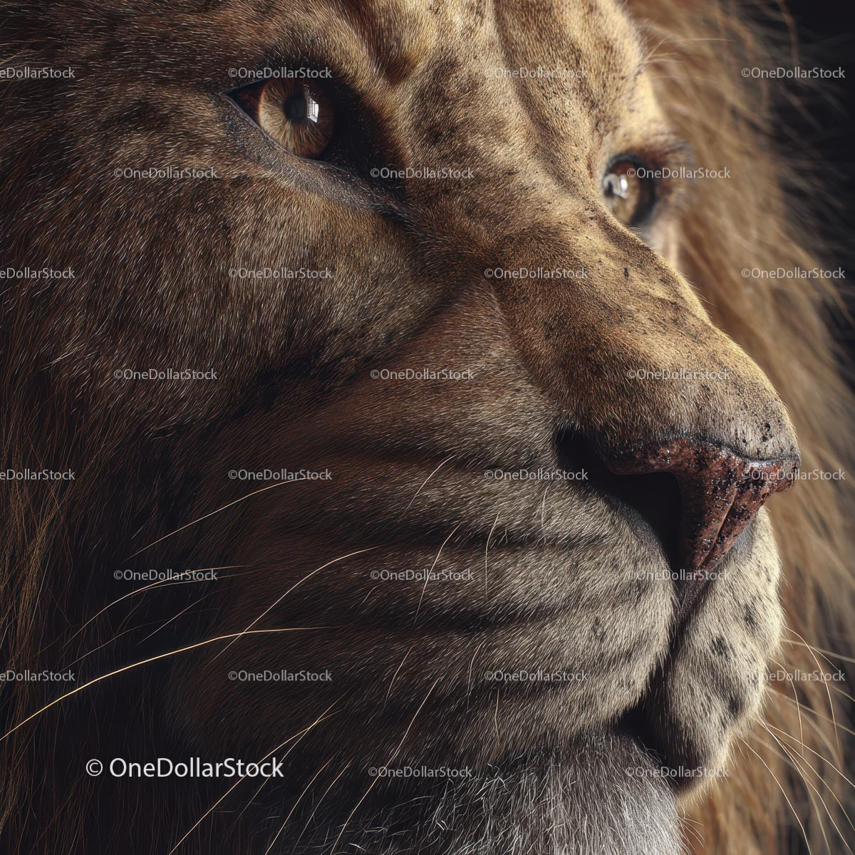 Close-Up of Majestic Lion with Focused Expression