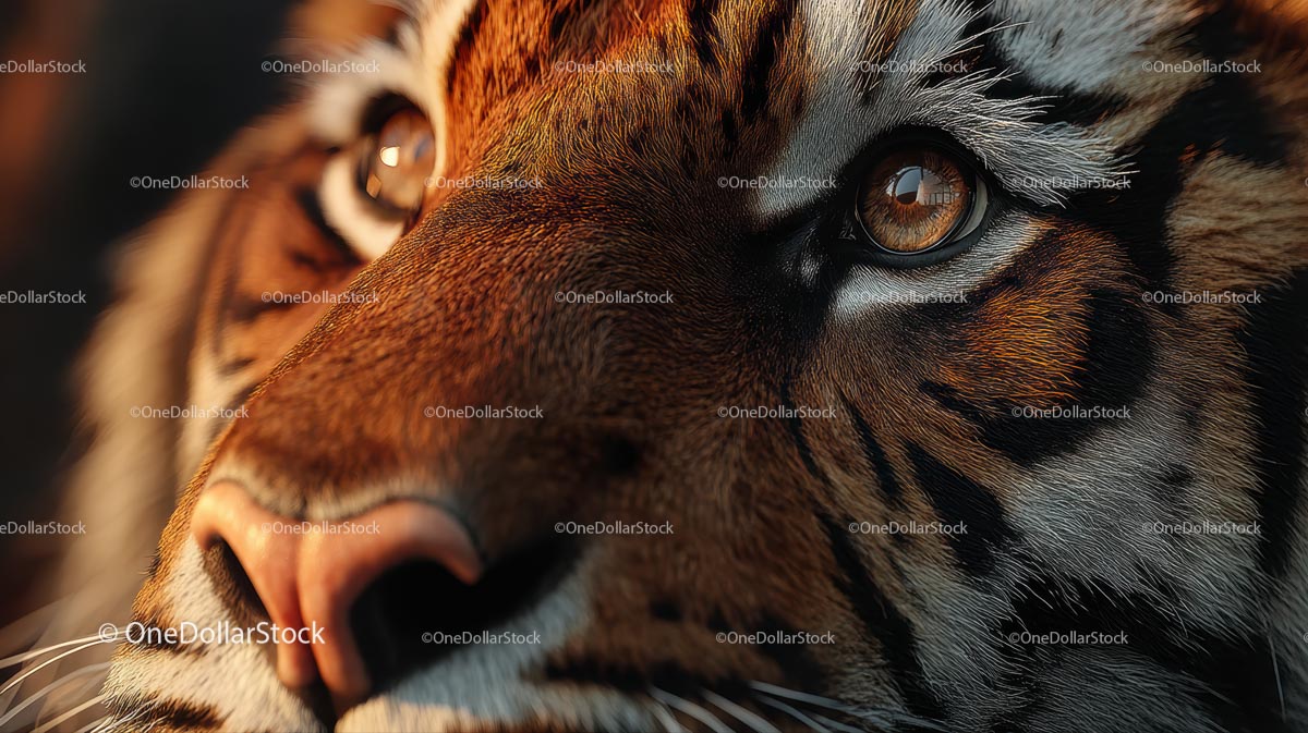 A captivating close-up of a tiger with its distinctive striped fur and piercing eyes, capturing the essence of its wild and majestic nature. The intricate patterns and textures of the tiger's coat highlight its beauty and strength, evoking a sense of awe and admiration. The image showcases the tiger's intense gaze, reflecting its role as a powerful predator in the animal kingdom.