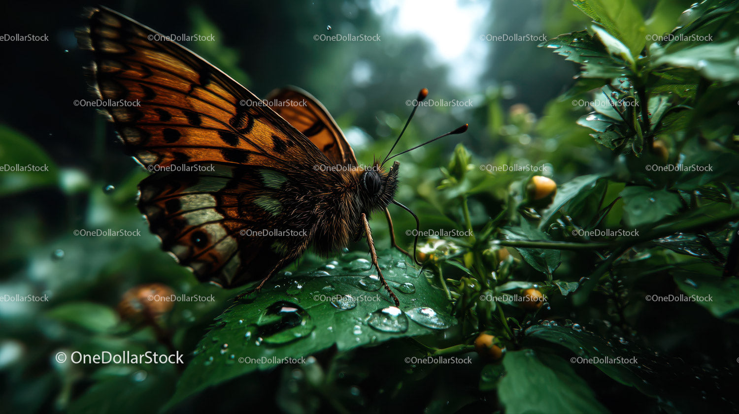 Close-up of Orange and Black Butterfly on Leaf in Tropical Garden