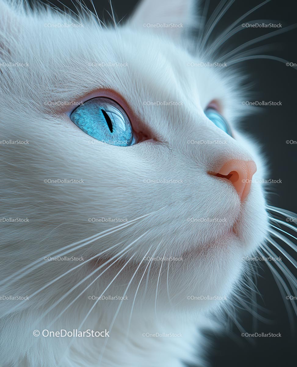 Close-Up of White Cat with Striking Blue Eyes