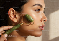 Close-Up of Woman Using Jade Roller for Facial Skincare