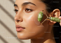 Close-up of Woman Using Jade Roller for Facial Skincare Wellness