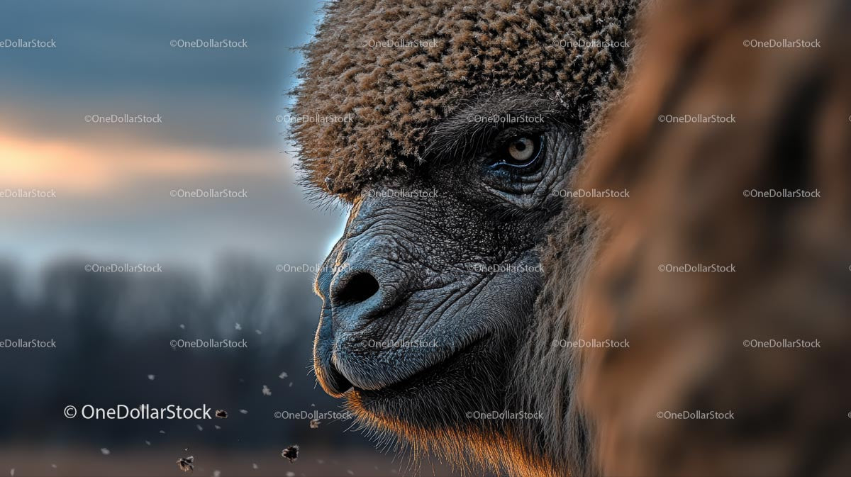 Close-Up Portrait of a Camel in the Sunset