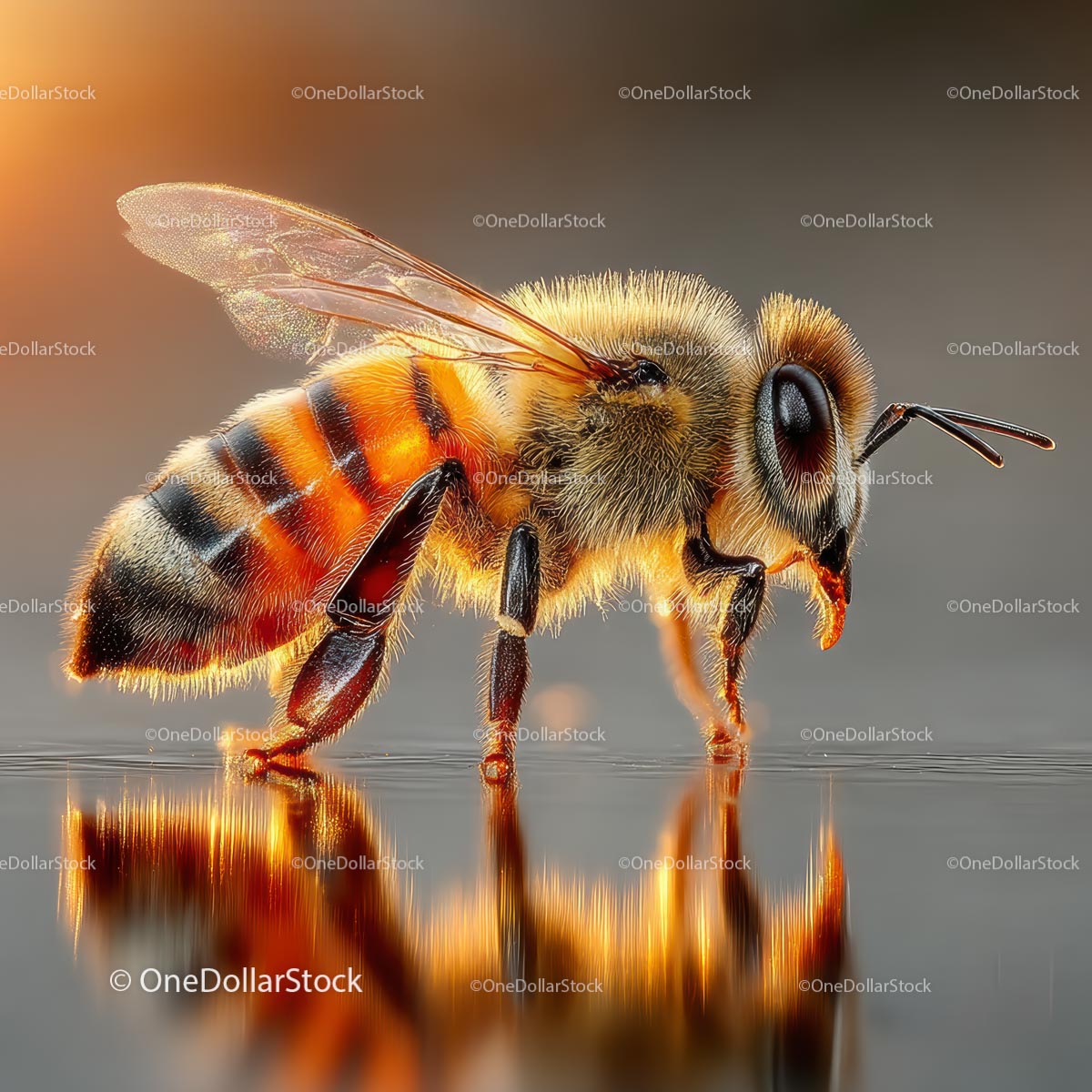 Close-Up View of a Honeybee Reflecting in Sunlight
