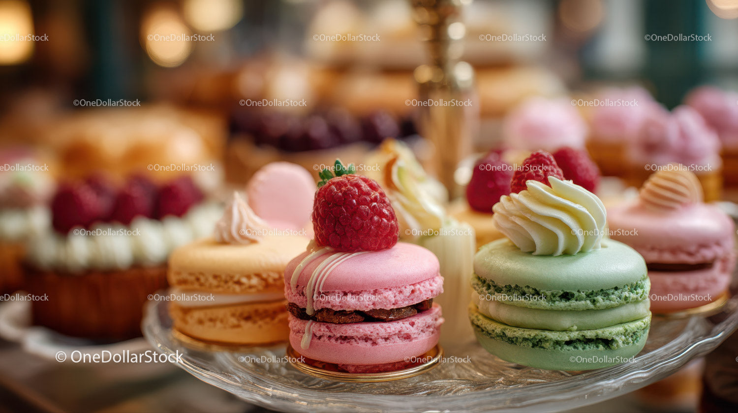 Colorful Assortment of Macarons and Pastries on Elegant Dessert Platter