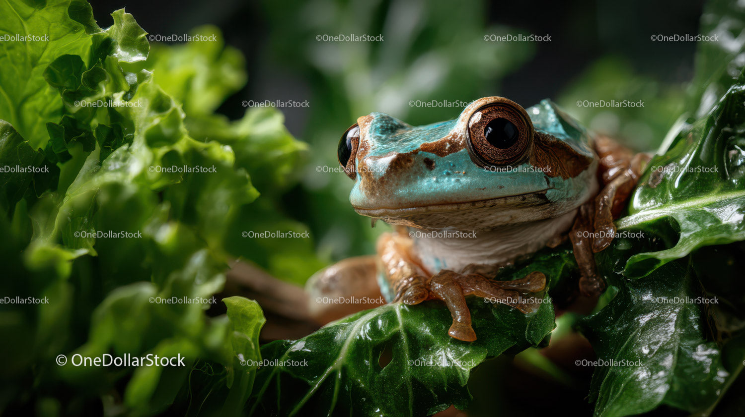 Colorful Frog on Lush Green Leaves in Tropical Jungle