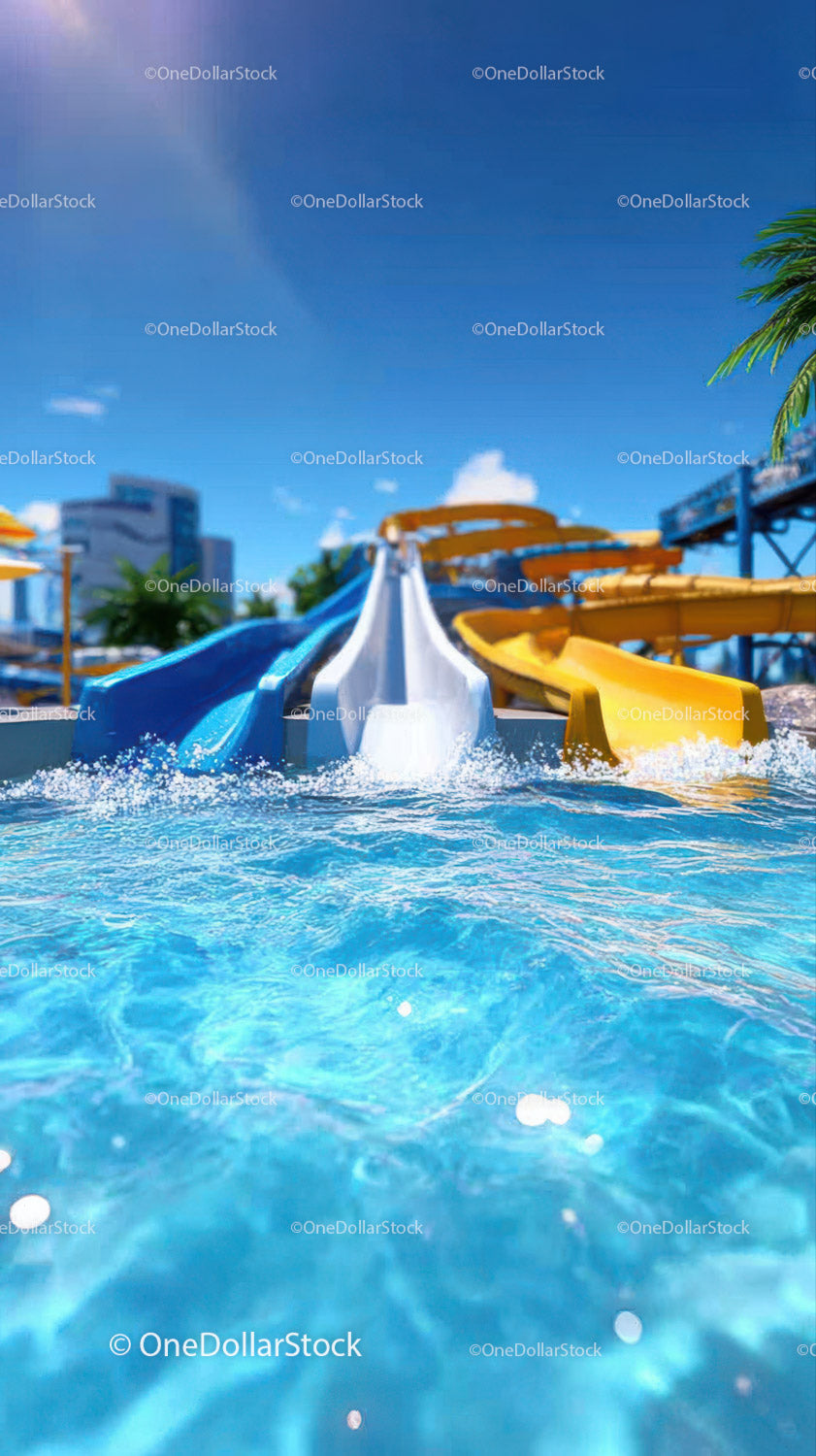 Colorful Water Slides at Summer Water Park Outdoor Recreation