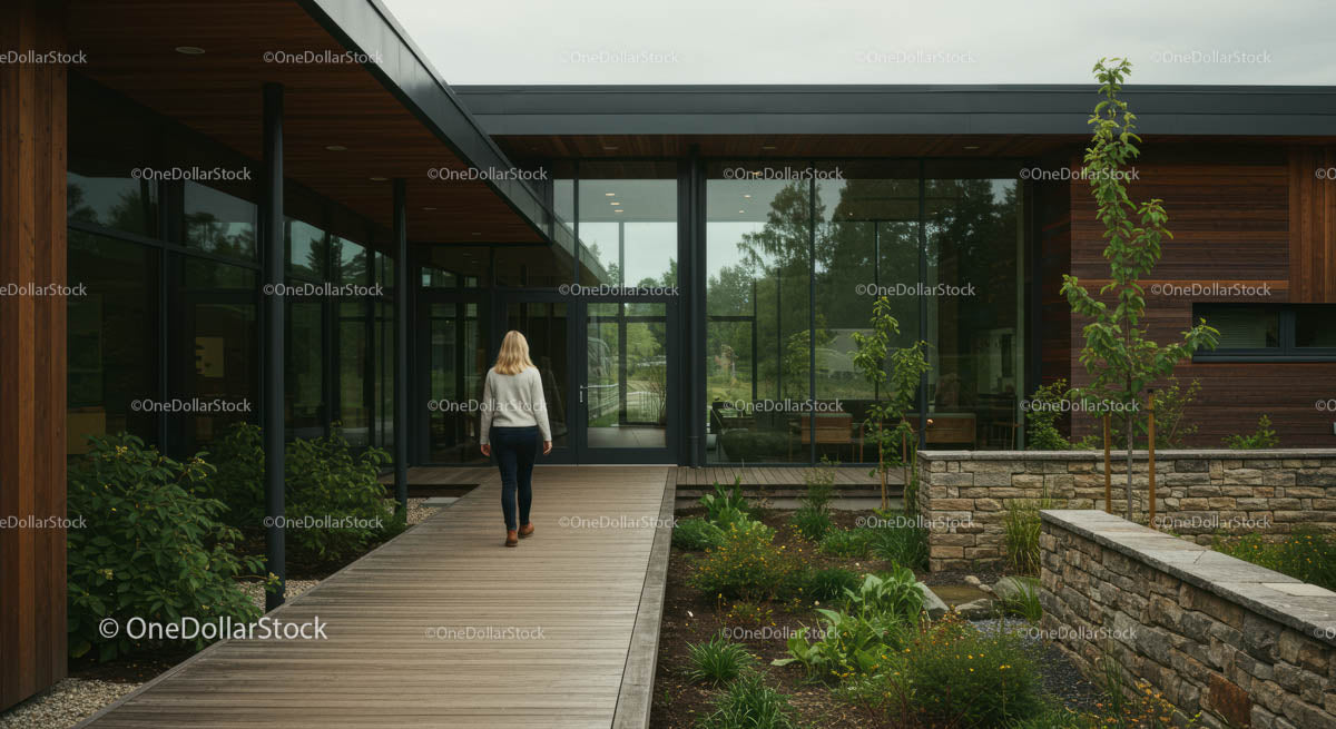 Contemporary Glass Facade with Lush Greenery