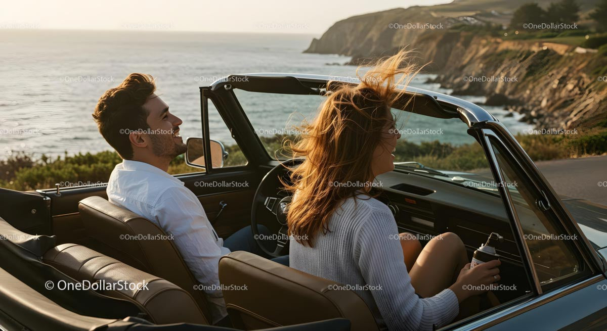 Couple Enjoying a Scenic Drive Along the Coastline