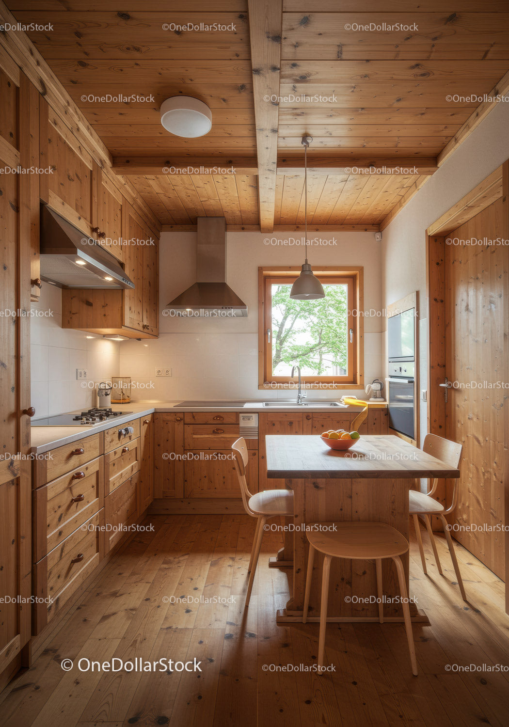 Cozy Rustic Wooden Kitchen with Natural Wood Finish and Modern Appliances