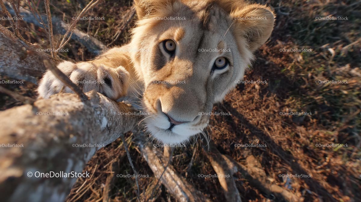 Curious Lion Cub Climbing a Tree in Natural Habitat