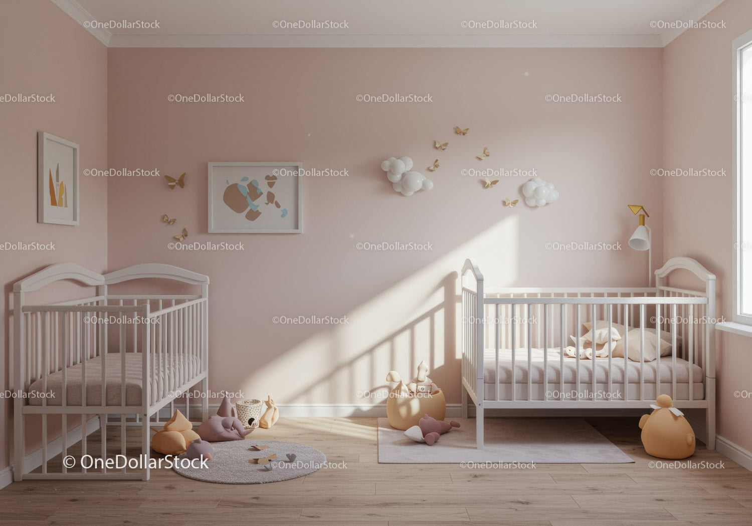 Cute Baby Nursery with Pink Wall and Cloud Wall Decor