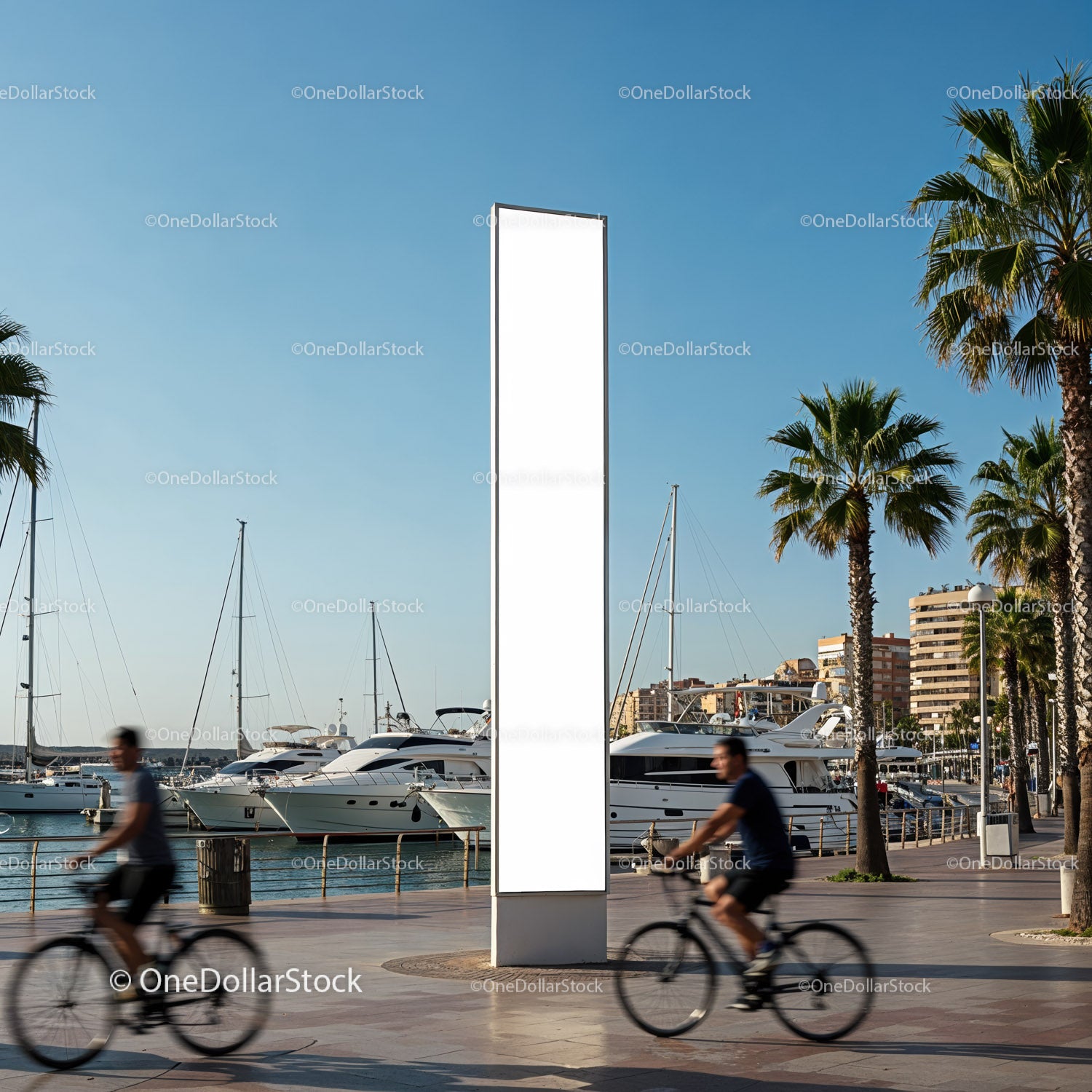 Cyclists Passing Blank Billboard by Marina on Sunny Day