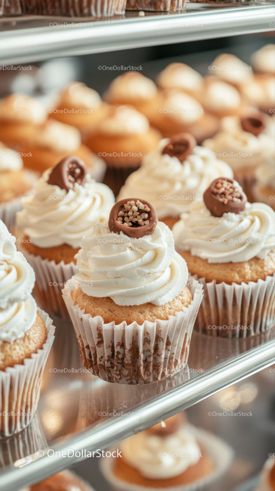 Delicious Vanilla Cupcakes with Chocolate Hazelnut Topping Display