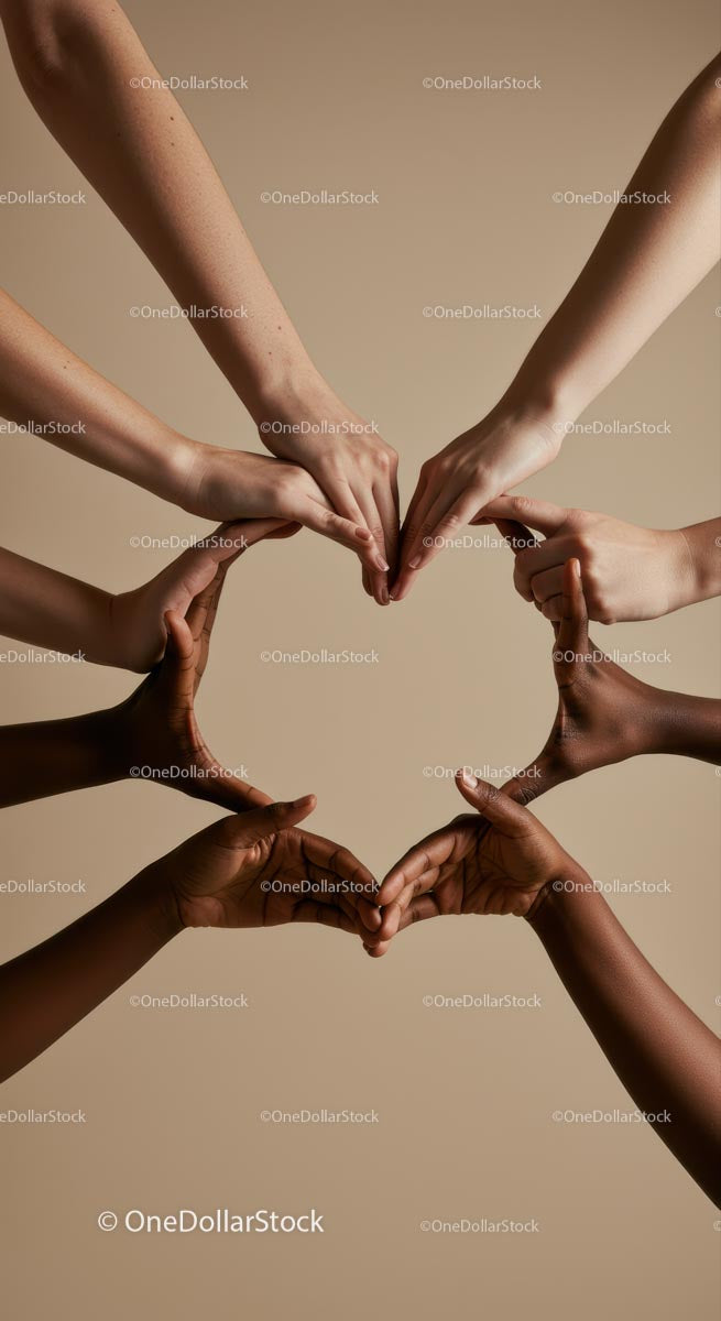 Diverse Hands Forming a Heart Shape for Unity and Love