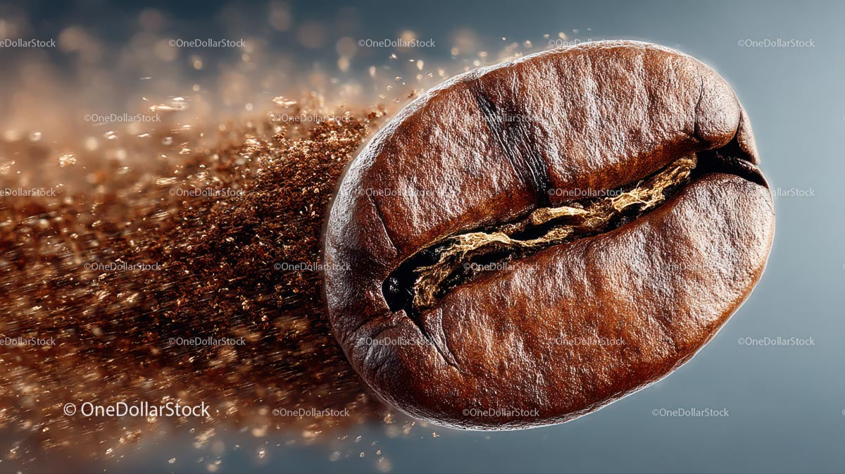 Dynamic Close-Up of a Roasted Coffee Bean in Motion