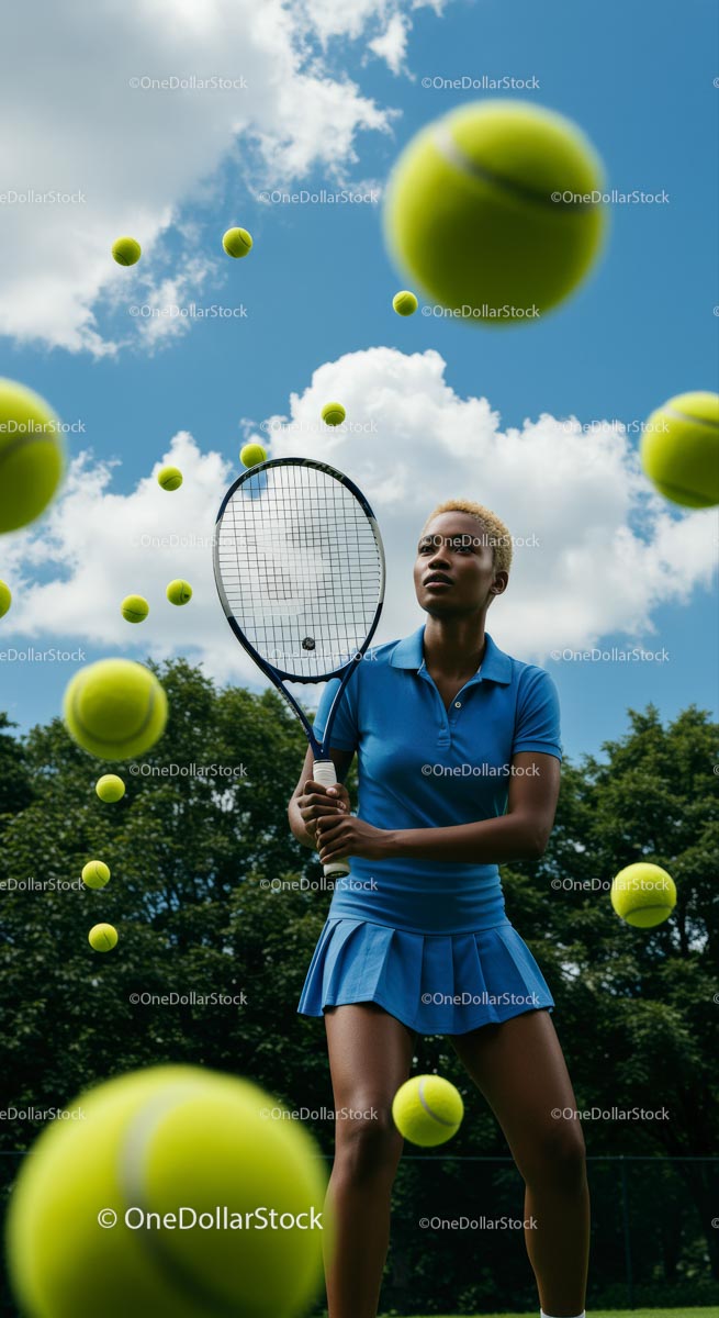 Dynamic Tennis Player in Action Under Cloudy Sky