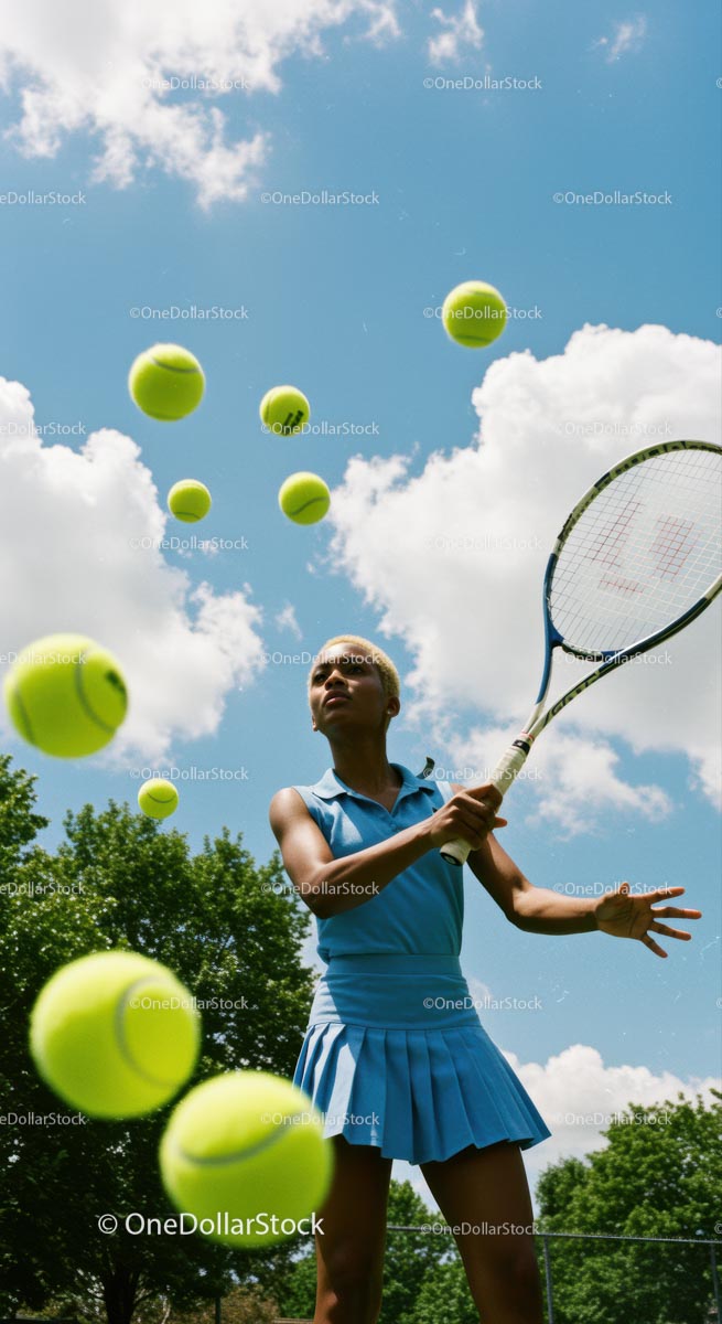 Dynamic Tennis Player Striking in a Clear Blue Sky