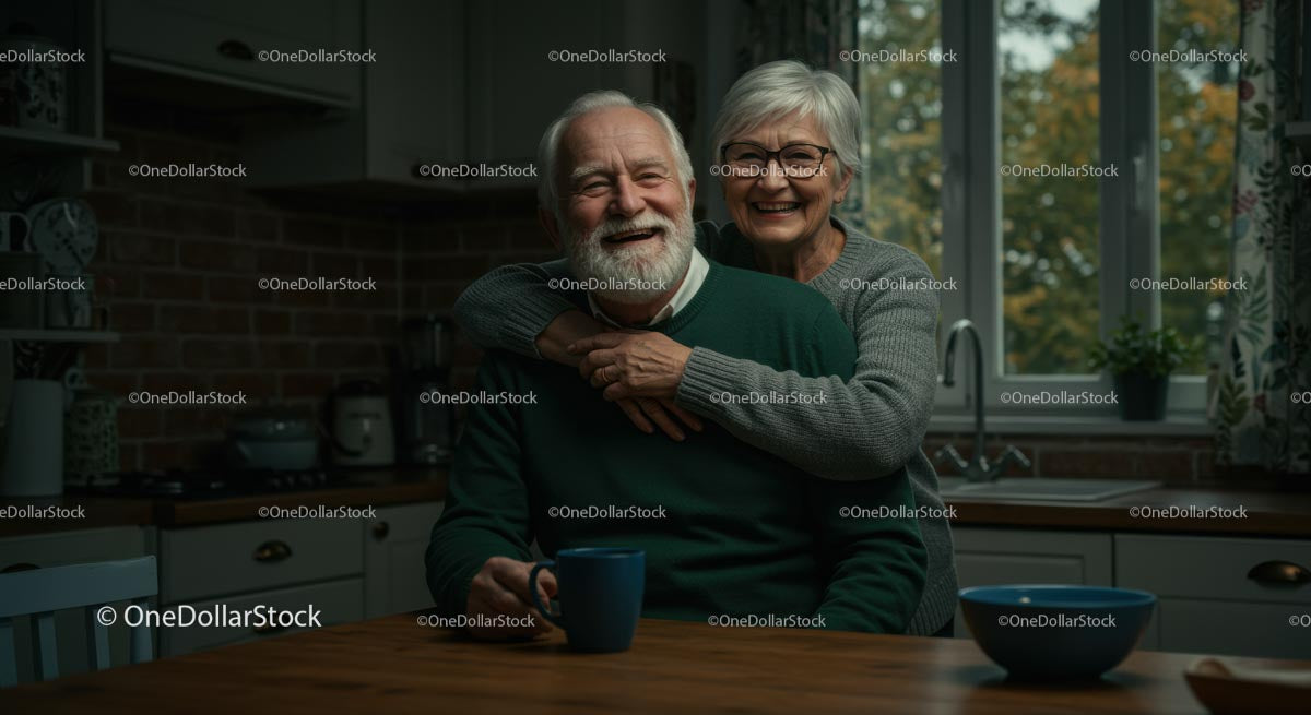 Elderly Couple Enjoying Morning Coffee in Cozy Kitchen