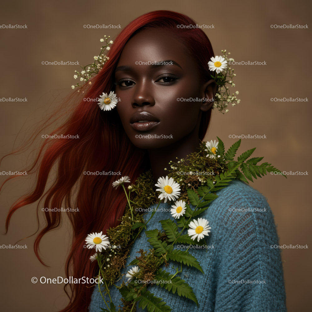 Elegant Woman with Red Hair and Floral Accessories in Artistic Portrait