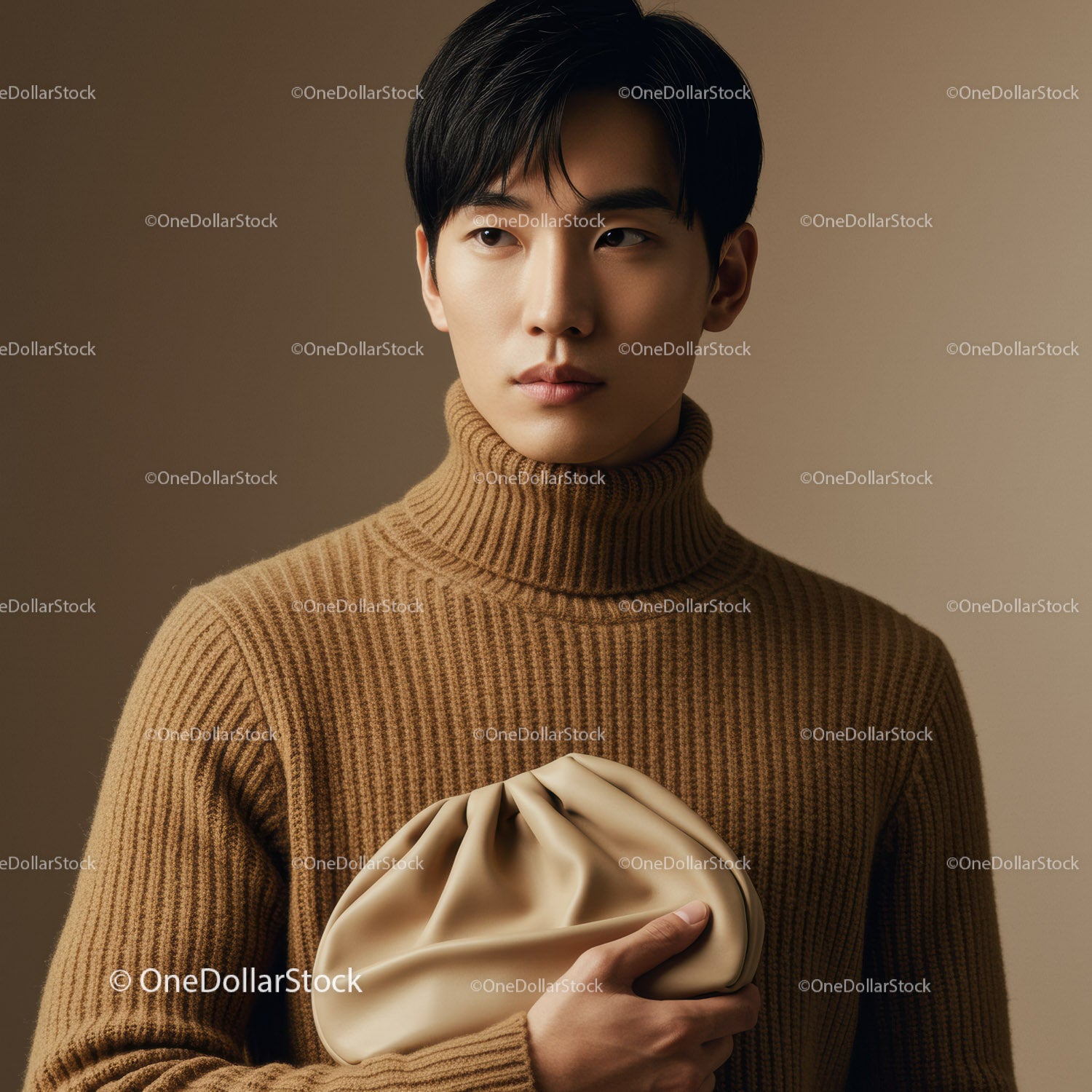 Elegant Young Man Wearing Beige Turtleneck with Accessories