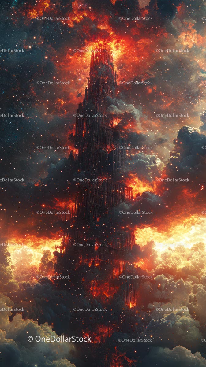 Epic Space Explosion Over a Fiery Tower in Nebula Universe