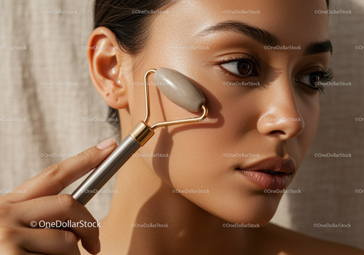 Exceptional Woman Using Facial Roller for Radiant Skin Beauty