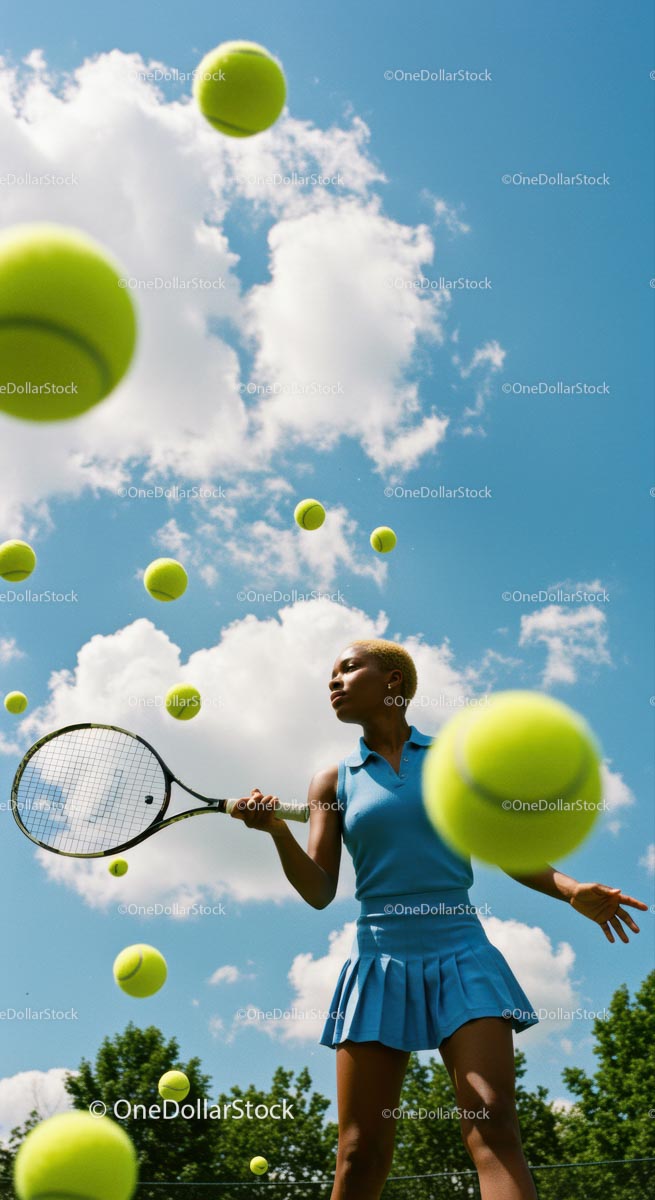 Female Tennis Player Amidst Flying Tennis Balls Outdoors