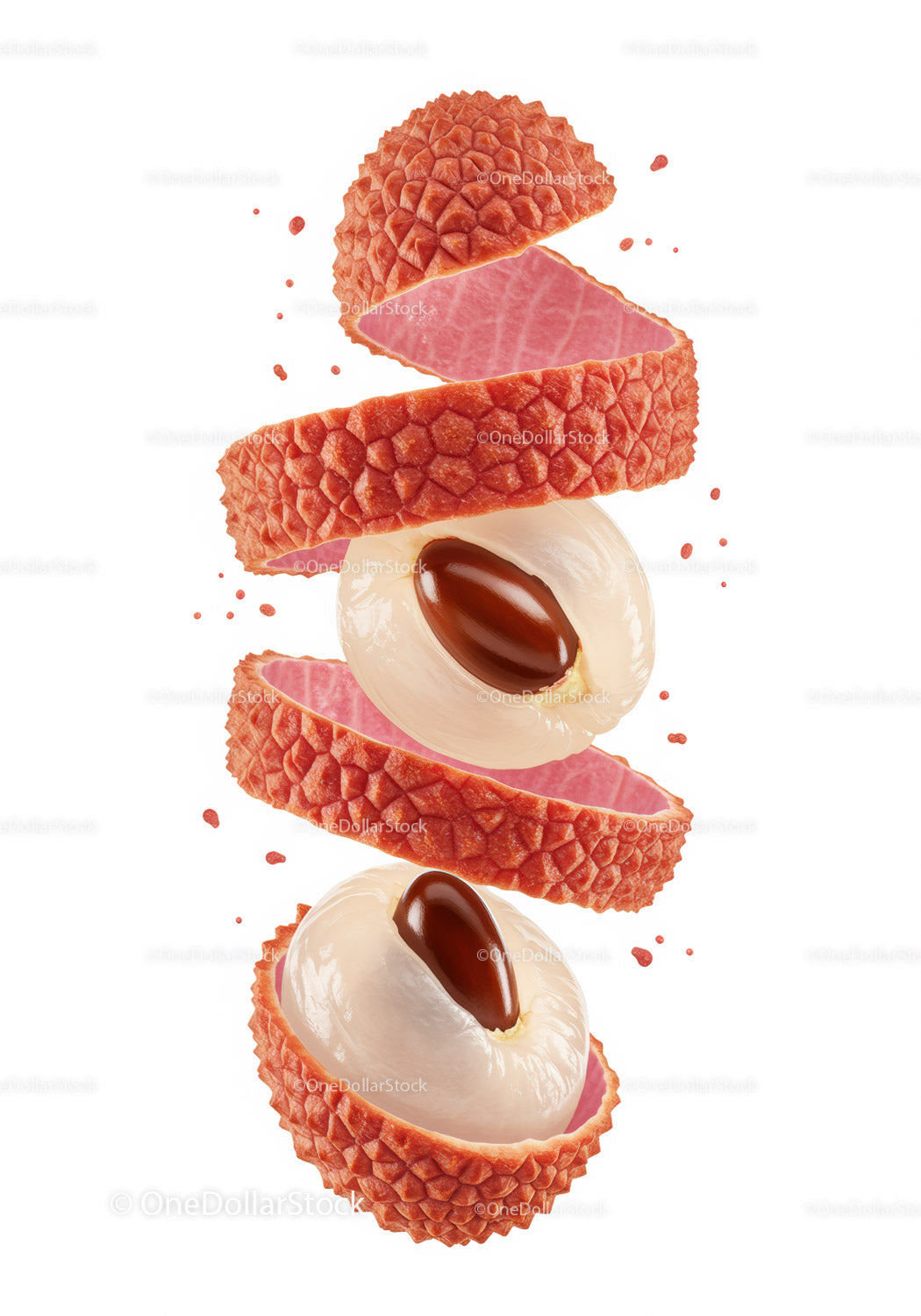 Fresh lychee fruit peeled revealing juicy flesh and seed