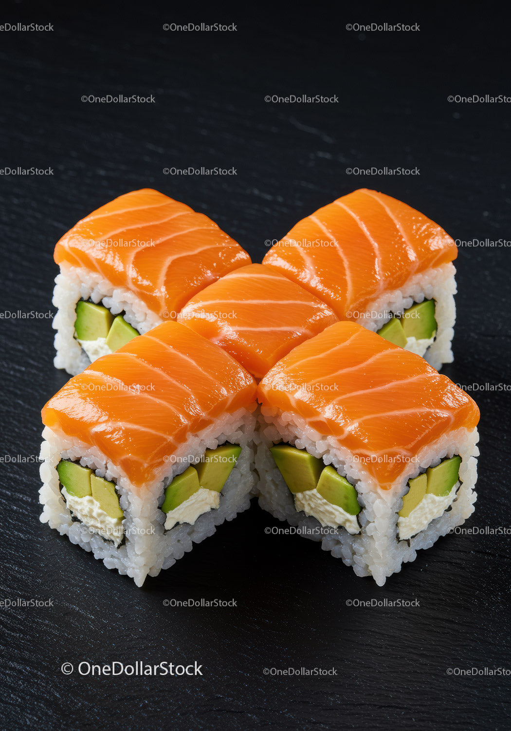 Fresh salmon sushi rolls with avocado and cream cheese