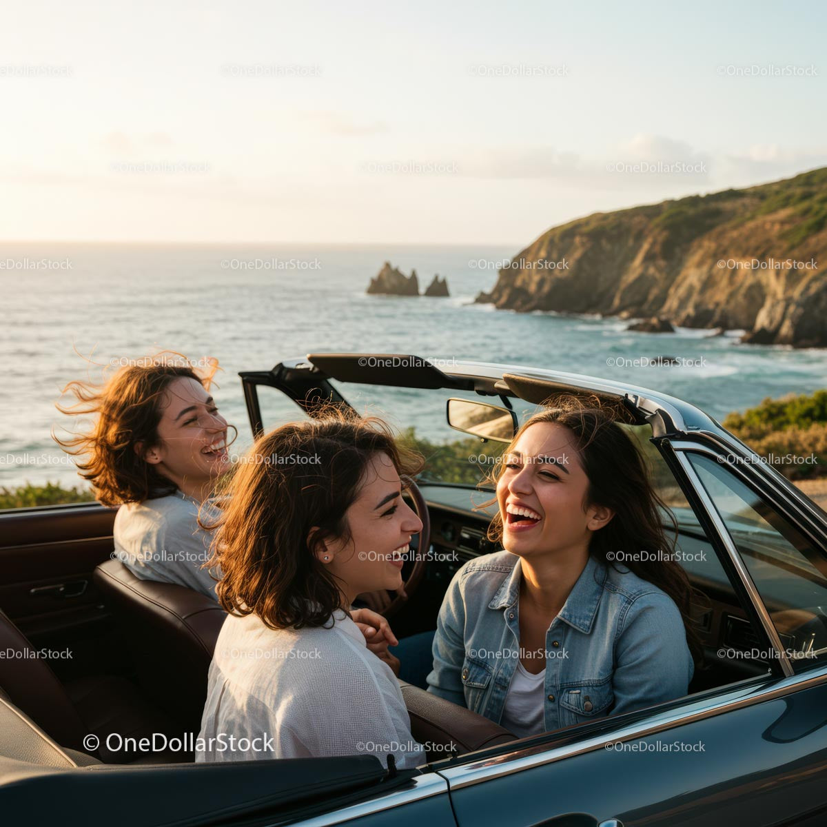 Friends Enjoying Scenic Coastal Drive in a Convertible