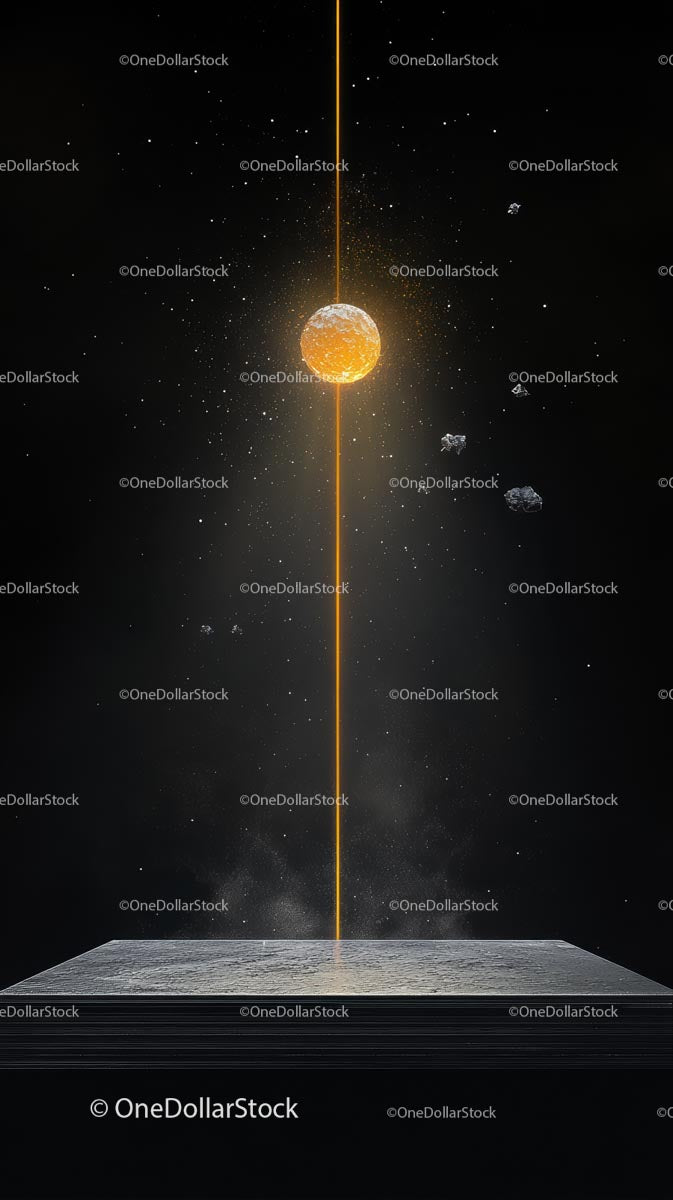 Futuristic Spacecraft Descending Towards Moon-Like Asteroid in Deep Space