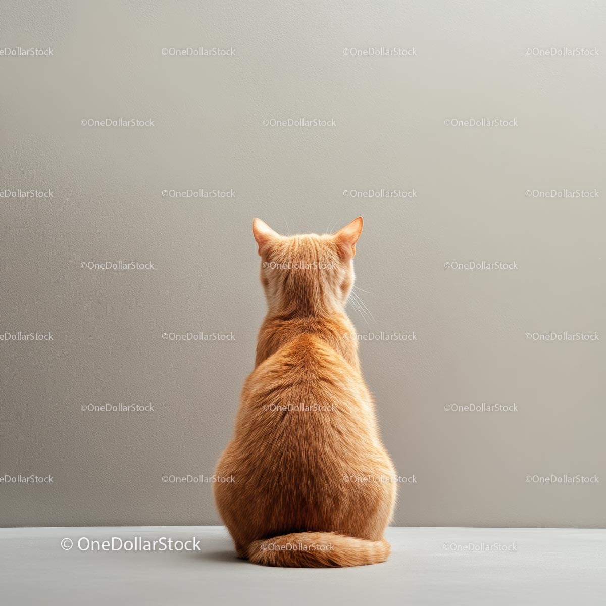 Ginger Cat Sitting Calmly Against a Minimalistic Background
