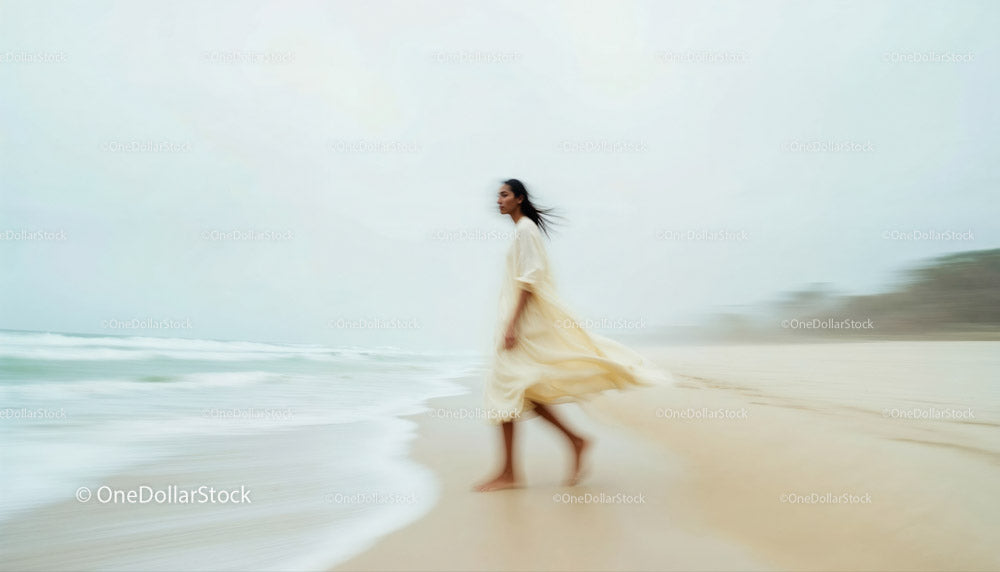 Graceful Woman Walking Along a Serene Beach at Dusk (21 Images)