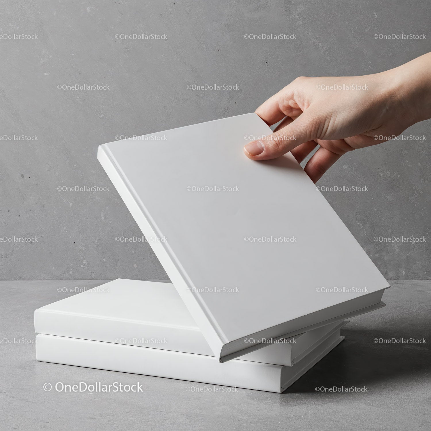 Hand Picking Up a Blank White Hardcover Book
