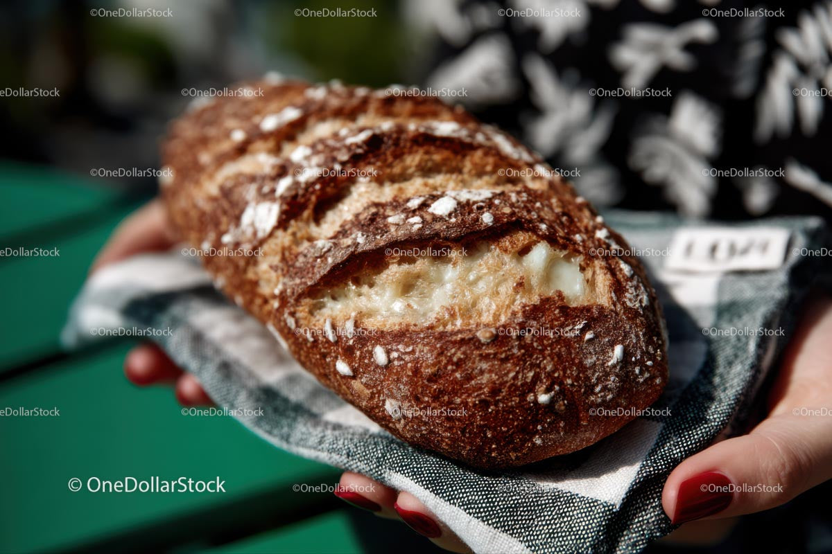 Hands Holding Freshly Baked Artisanal Bread Loaf
