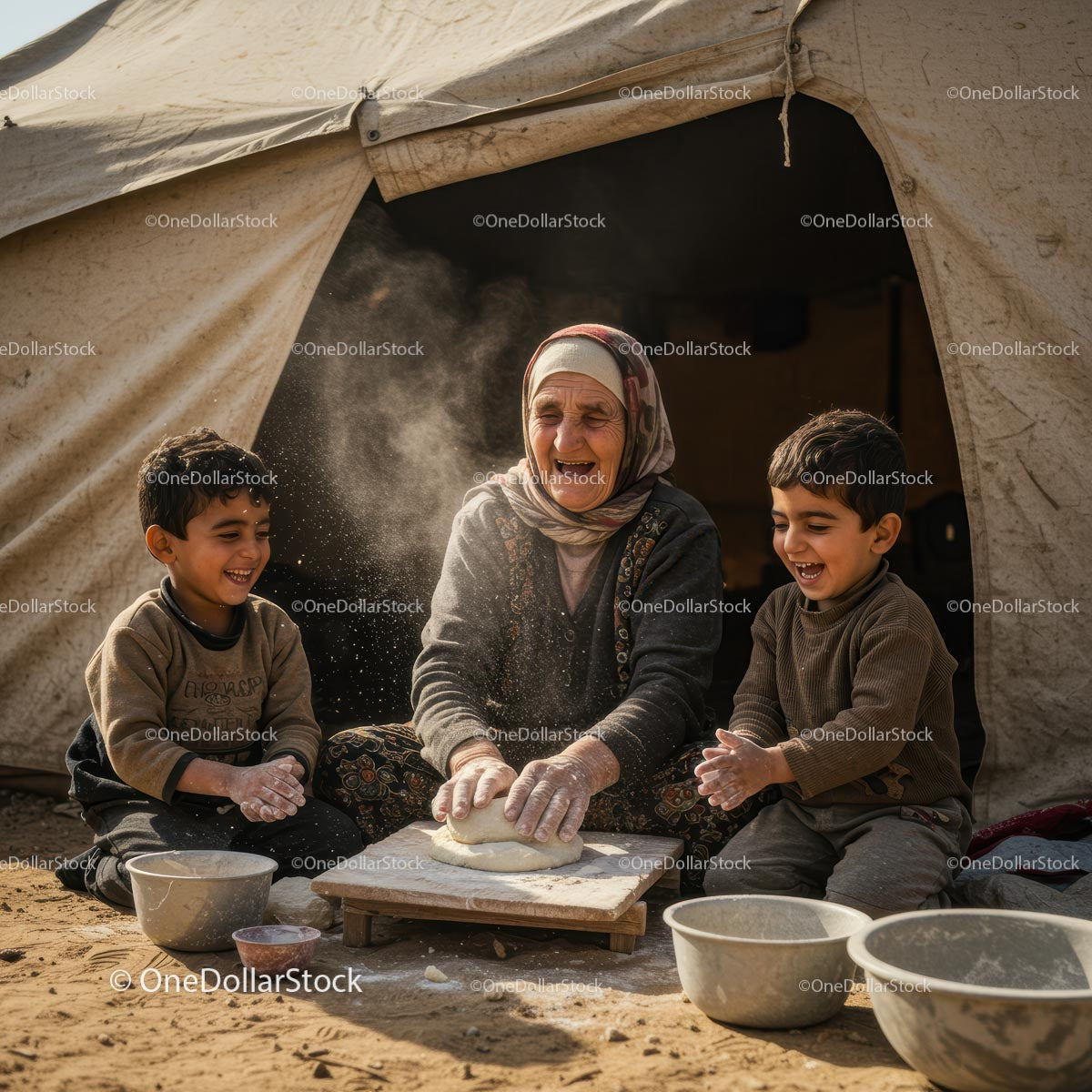 Happy Family Baking Together at a Campsite
