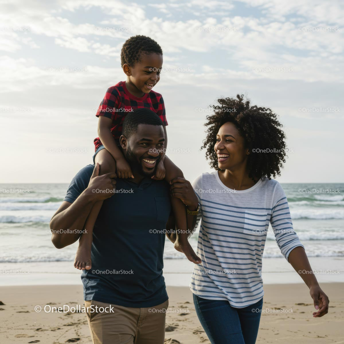 Happy Family Strolling on a Sandy Beach