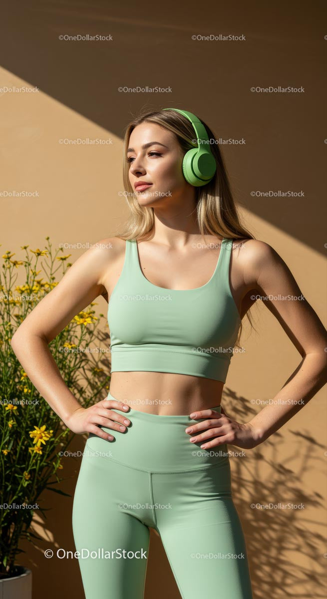 Healthy Lifestyle with Green Sports Outfit in Sunlight