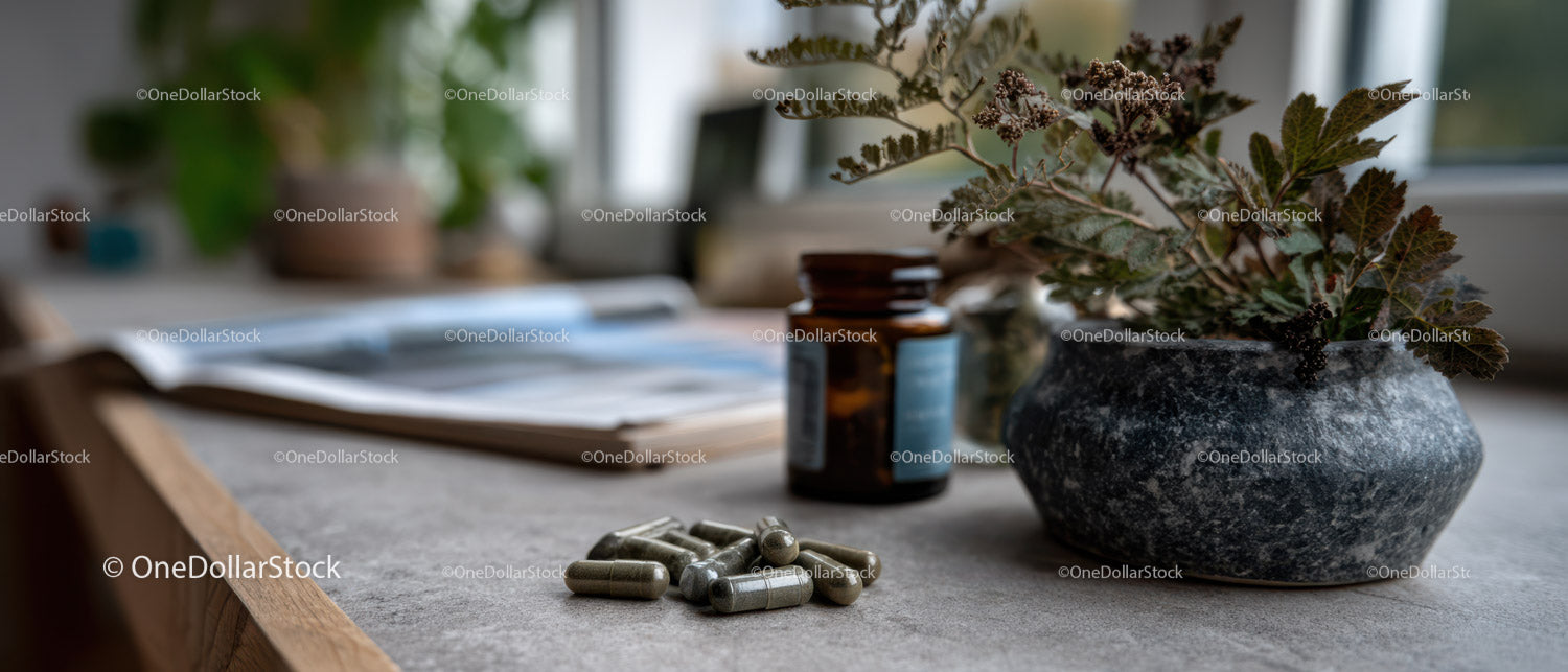 Herbal Supplements and Botanical Plant in a Modern Home Setting