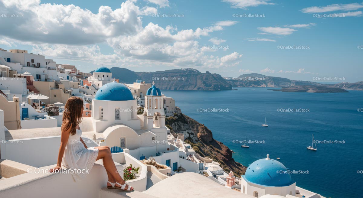 Idyllic Summer View of Santorini's Blue Domes and Aegean Sea