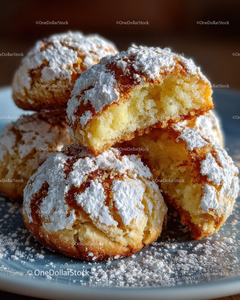 Lemon Cake Balls with Powdered Sugar Topping in Close-Up