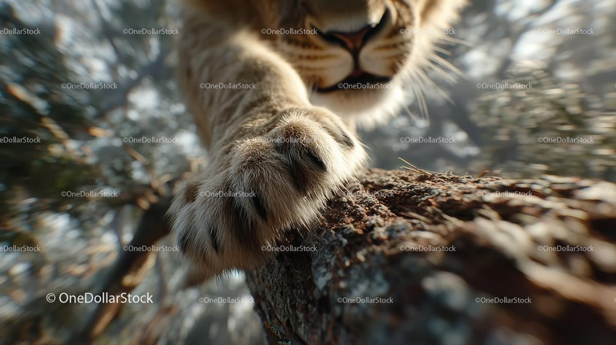 Lion Cub's Paw on Tree in Sunlit Jungle