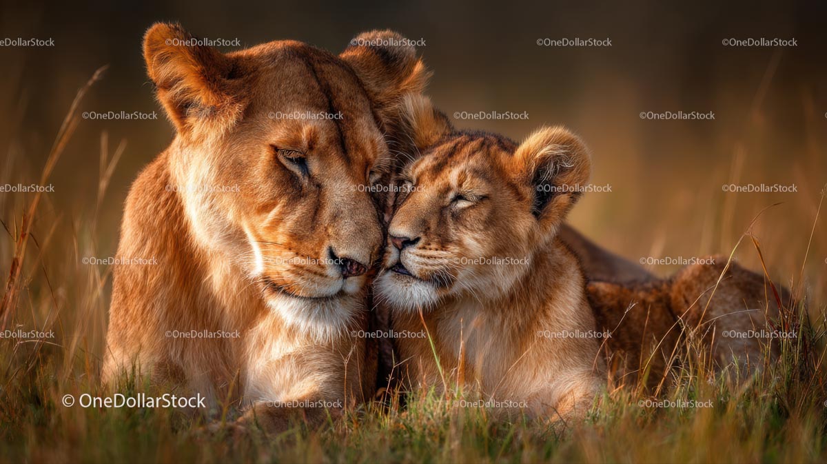 Lioness and Cub in a Tender Moment on the African Savanna