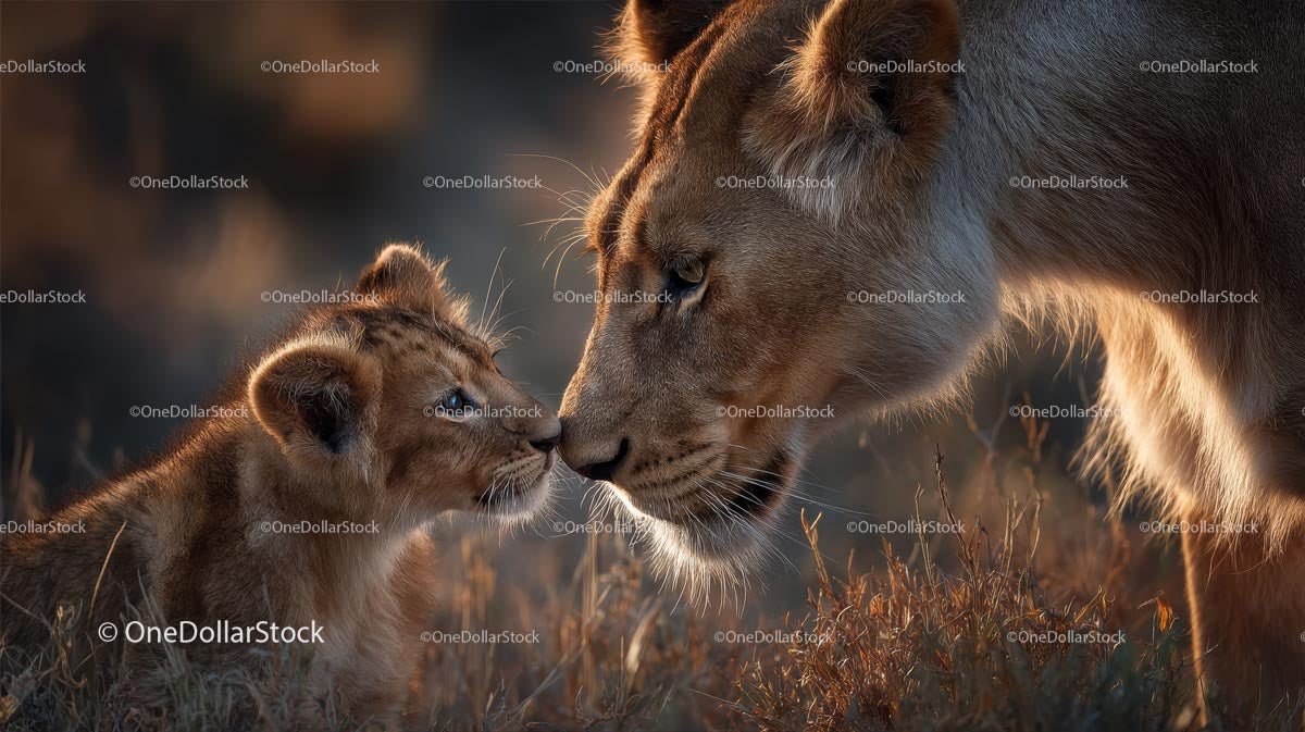 Lioness and Her Cub in Intimate Savannah Moment